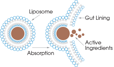 The liposomal matrix surrounds and protects the active ingredients from stomach acid, helping absorption and promoting the steady release of all ingredients